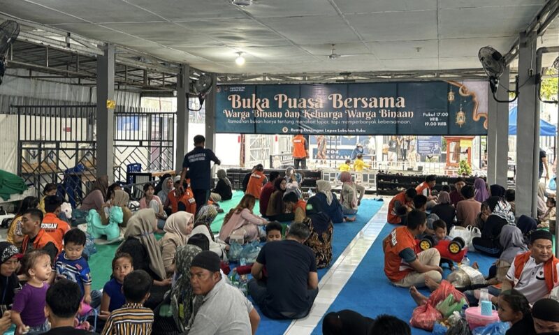 Suasana haru dan penuh kehangatan menyelimuti kegiatan buka puasa bersama antara warga binaan dan keluarga di Lapas Kelas IIA Labuhan Ruku, Rabu(4/3).